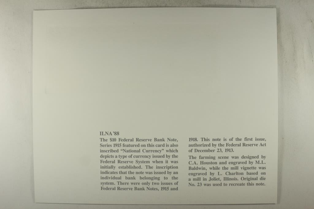 REVERSE OF A 1915 $10 NATIONAL CURRENCY NOTE, PRINTED BY THE BUREAU OF ENGRAVING AND PRINTING