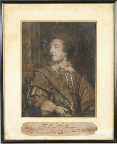 IMAGE AND EARLY ORIGINAL AUTOGRAPH OF THE EARL OF BUCHAN. Also included with his autograph, ""As a mark of my attachment to the cause of liberty"". ""J. Otis, Esquire of BostonNew EnglandAccording to act of Parliament, November 28 (?)Libertas (symbol of a hat), IBI Patia"". SIZE: 19-1/2 h x 15-1/2in. w (includes frame & matting). CONDITION: Image, mat and cropped signature stained and soiled. 9-26408