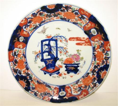 IMARI STYLE PLATE. Cobalt & red floral decoration. Marked “Nippon” on reverse. 9.5” Dia.