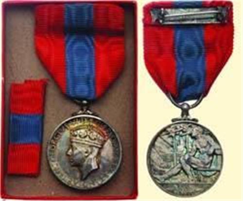 Medal type George VI ("...INDIAE IMP"); silver, named "HERBERT THOMAS GILLAM", with large suspension ring, original ribbon with pin, in original card board box with ribbon bar. Nice patina!