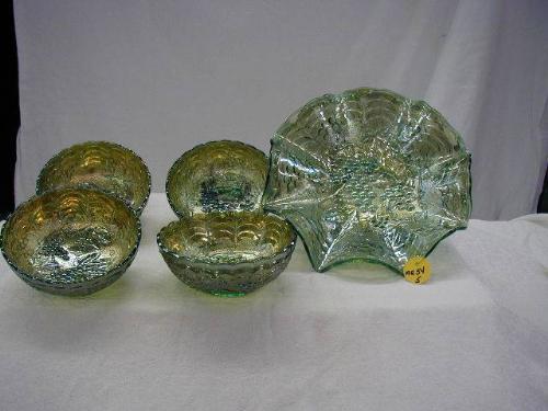 IMPERAIL GRAPE (BUBBLE ORIGINAL TO FIRING), (1) 9 1/8in FLUTED COMPOTE BOWL W/(4) MATCHING 5in BOWLS, 5 PC