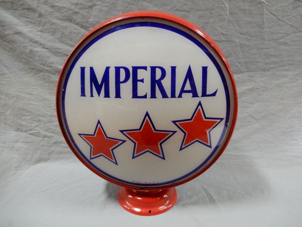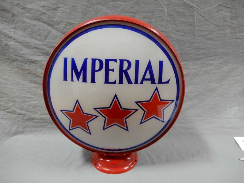 IMPERIAL 3 STAR GAS PUMP GLOBE METAL BODY - 16 1/2" PLASTIC LENSES REPRO LOCATION: UPPER LEFT