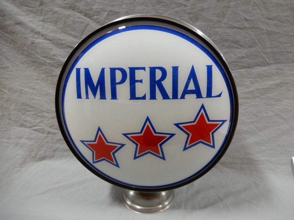IMPERIAL 3 STAR GAS PUMP GLOBE METAL BODY - SINGLE 15" REPRO LENSE LOCATION: UPPER LEFT