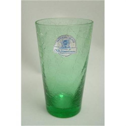 Crackle Glass drinking glasses made by the Imperial Glass Company of West Virginia.  Two glasses still retain the original label.  There are ten glasses in this set.  Four (4) green,, (3) three amethyst and (3) three amber.  All in in excellent condition.  Each glass is approx. 5 1/4" tall. All glasses are crackled.  I am selling the entire set and will not break up the set.