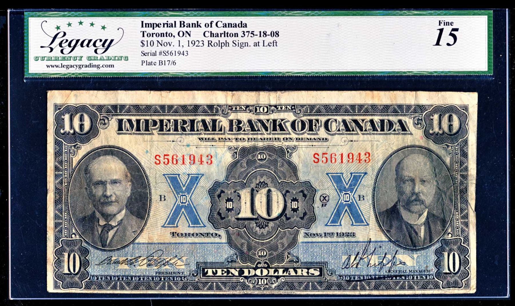 IMPERIAL BANK OF CANADA - $10 1923 Toronto - Legacy F-12