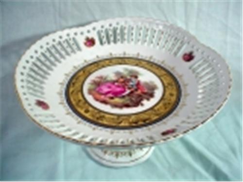 IMPERIAL, DESIGNED BY ANTONIO PORCELAIN OPENWORKED BORDER HANDPAINTED WITH A VICTORIAN COUPLE IN THE OUTDOORS. 6.5" X 12".