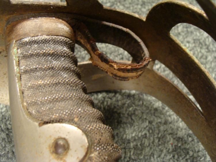 IMPERIAL GERMAN TRAIN BASKET HILT SABER-MASSIVE NICKLE HILT W/FISHSKIN GRIP * HUGE HILT ON THIS GERMAN SWORD FROM PRE-WWI--CIRCA 1880'S--34" BLADE SHOWS MUCH DISCOLORATION NO SCABBARD-SWORD NEEDS SOME TLC--NICE OLD SWORD-NICE SHARKSKIN GRIP WITH ONLY A COUPLE OF SCUFFS-STILL HA FINGER LOOP BELOW GRIP *