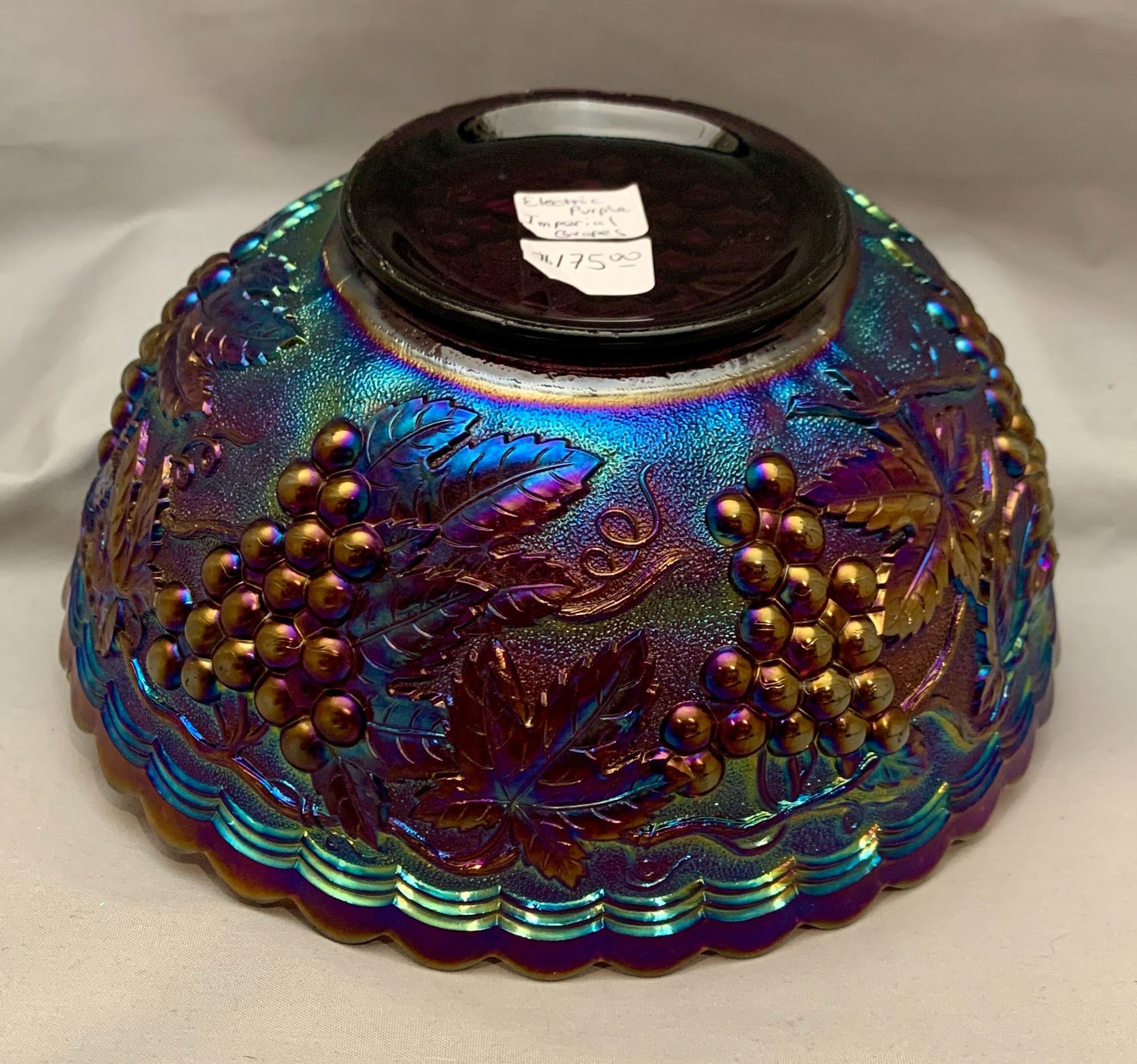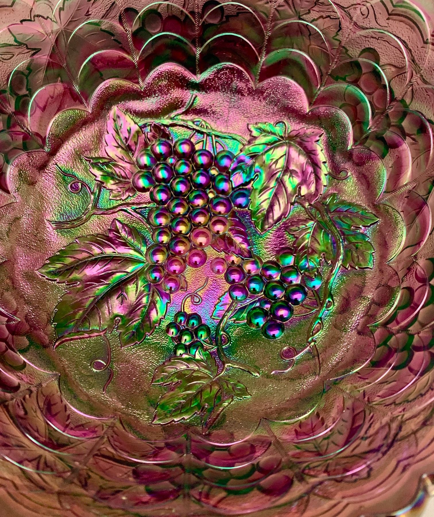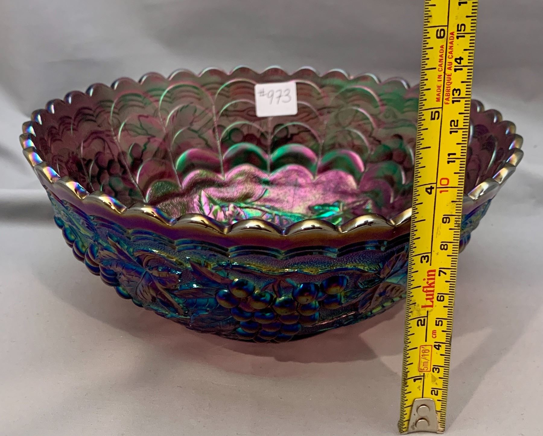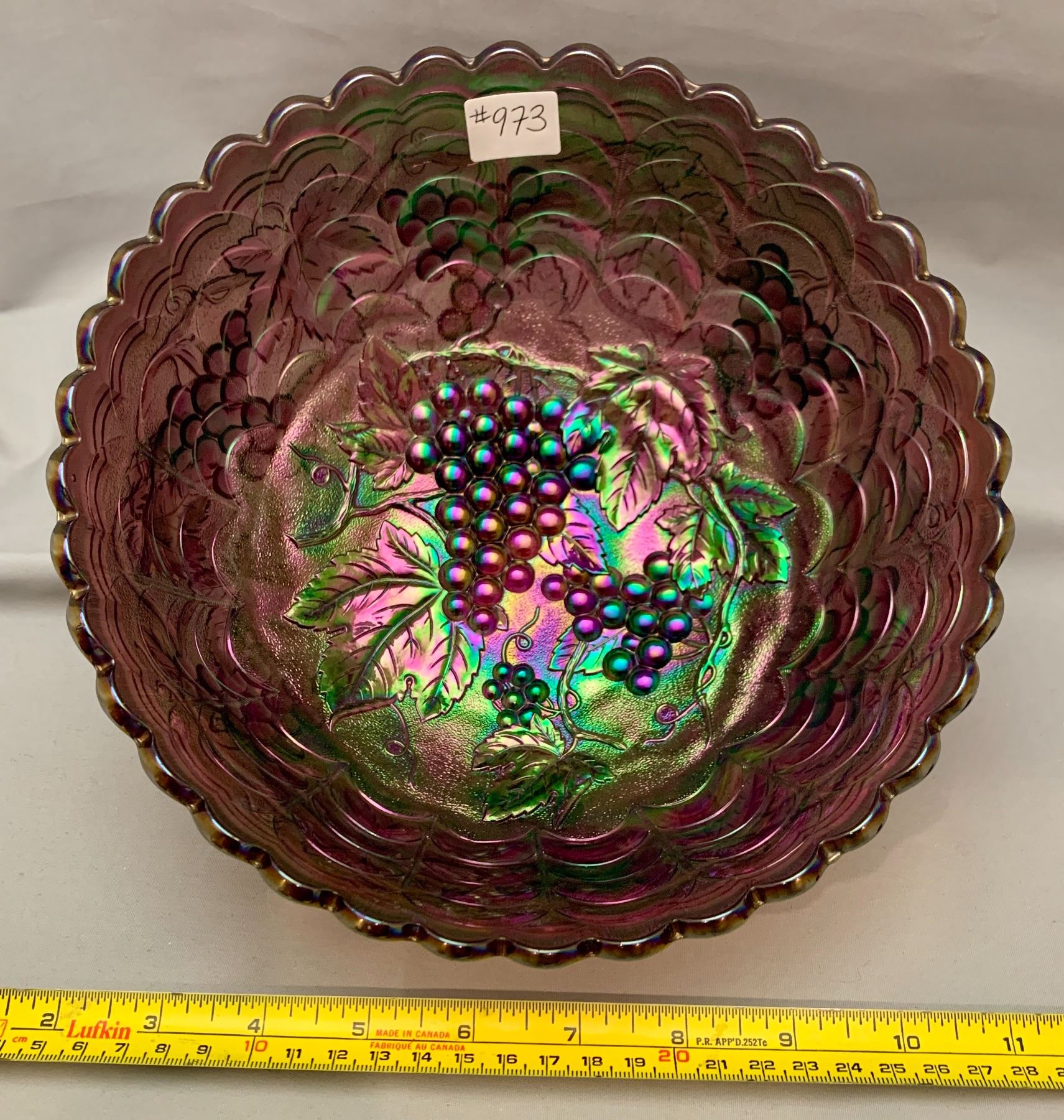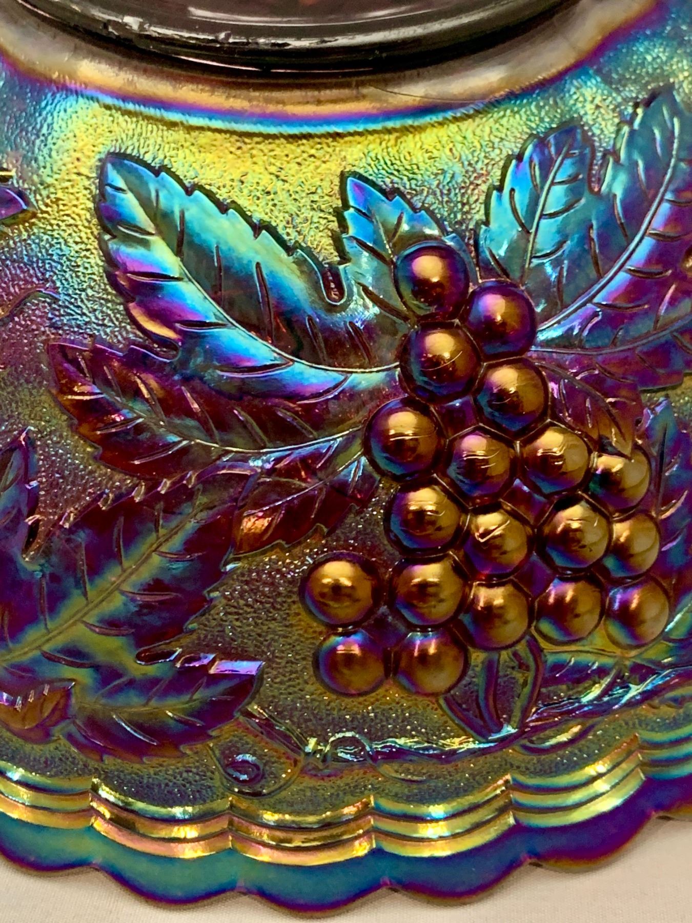IMPERIAL GLASS AMETHYST+CARNIVAL GLASS “GRAPES” DEEP ROUND MASTER BERRY BOWL CIRCA 1910