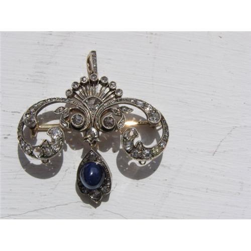 ONE OF A KIND!!! HUGE 5CT SAPPHIRE BROOCH/PENDANT BY FABERGE!!! FROM THE ROMANOV COURT!</em></td>