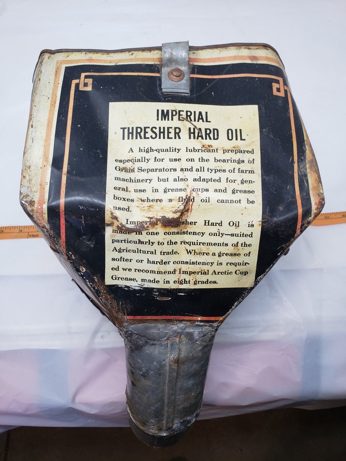 IMPERIAL THRESHER HARD OIL TIN (CONVERTED INTO FUNNEL)