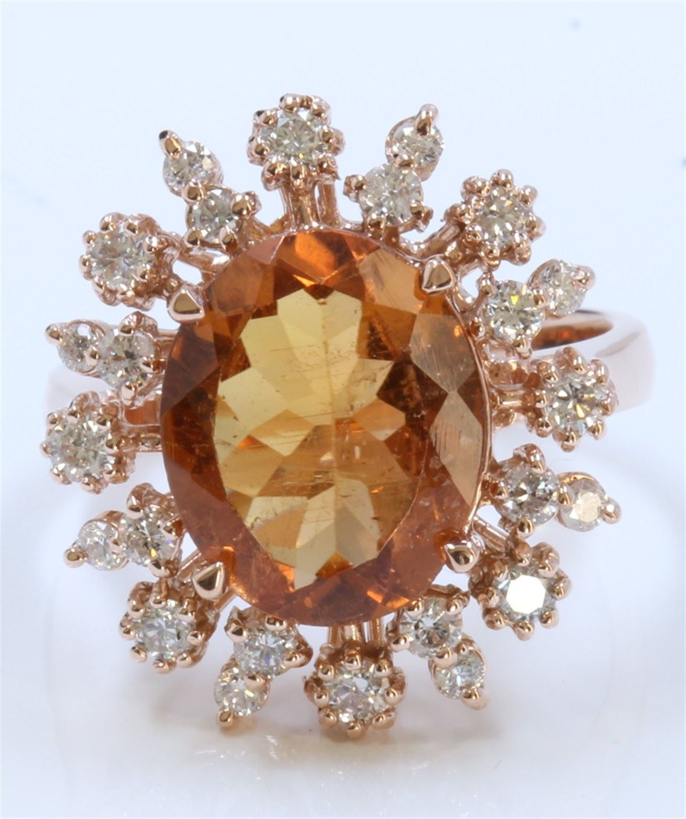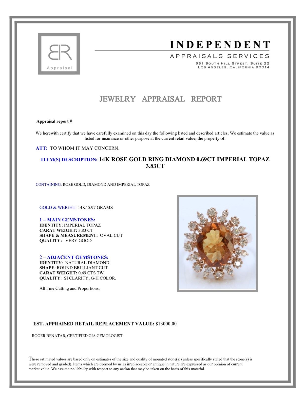 14K ROSE GOLD RING 5.97GRAM DIAMOND 0.69CT IMPERIAL TOPAZ 3.83CT
