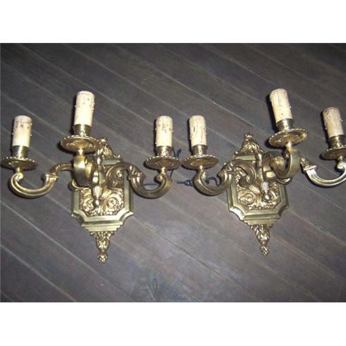 VERY IMPORTANT PAIR OF SOLID BRONZE SCONCES, 3 LIGHTS, WOOD CANDLES, REWIRED, WORK TO STANDARDS BULBS,BIG SIZE , EXCELLENT CONDITION.GO THROUGH PRIVATE COURIER SPECIAL SERVICE , ONCE READY THE PACKAGING , YOU RECEIVE IN ONLY 3 BUSINESS DAYS.