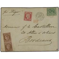 57,58 1875 (Sept 11) Cover from MONTEVIDEO to BORDEAUX franked by Uruguay 1866/670 perf. 10 c. green (Scott 36) mailed to Bordeaux in combination with