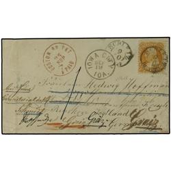 (1864 CA) 30 c. orange (71). Bright color, "Iowa City Ioa. Sep. 19" circular datestamp on cover to GERMANY and redirected within Germany, ...