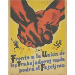 FRENTE A LA UNIÓN DE LOS TRABAJADORES NADA PODRA EL FASCISMO. 1938. 34x26cm. (13,5x10,5in.). Litografía. A-.