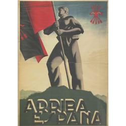 ARRIBA ESPAÑA. 1938. 140x101,5cm. (55x40in.). Litografía. B+. Algunas manchas difusas.