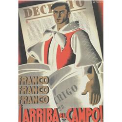 DELGADO, TEODORO. FRANCO, FRANCO, FRANCO, ARRIBA EL CAMPO. 1938. 100x70cm. (40x27in.). Litografía. A-. Entelado.