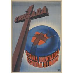 I CRUZADA, ESPAÑA ORIENTADORA ESPIRITUAL DEL MUNDO. (1937 CA.). 100x70cm. (40x27in.). Litografía. B+. Entelado.