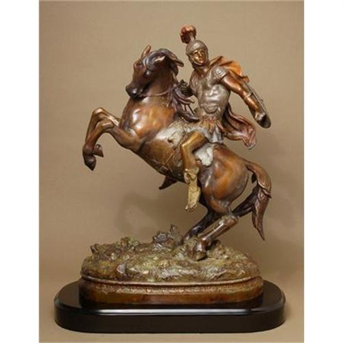 IMPRESSIVE DYNAMIC ROMAN SOLDIER RIDING HORSE BRONZE SCULPTURE
