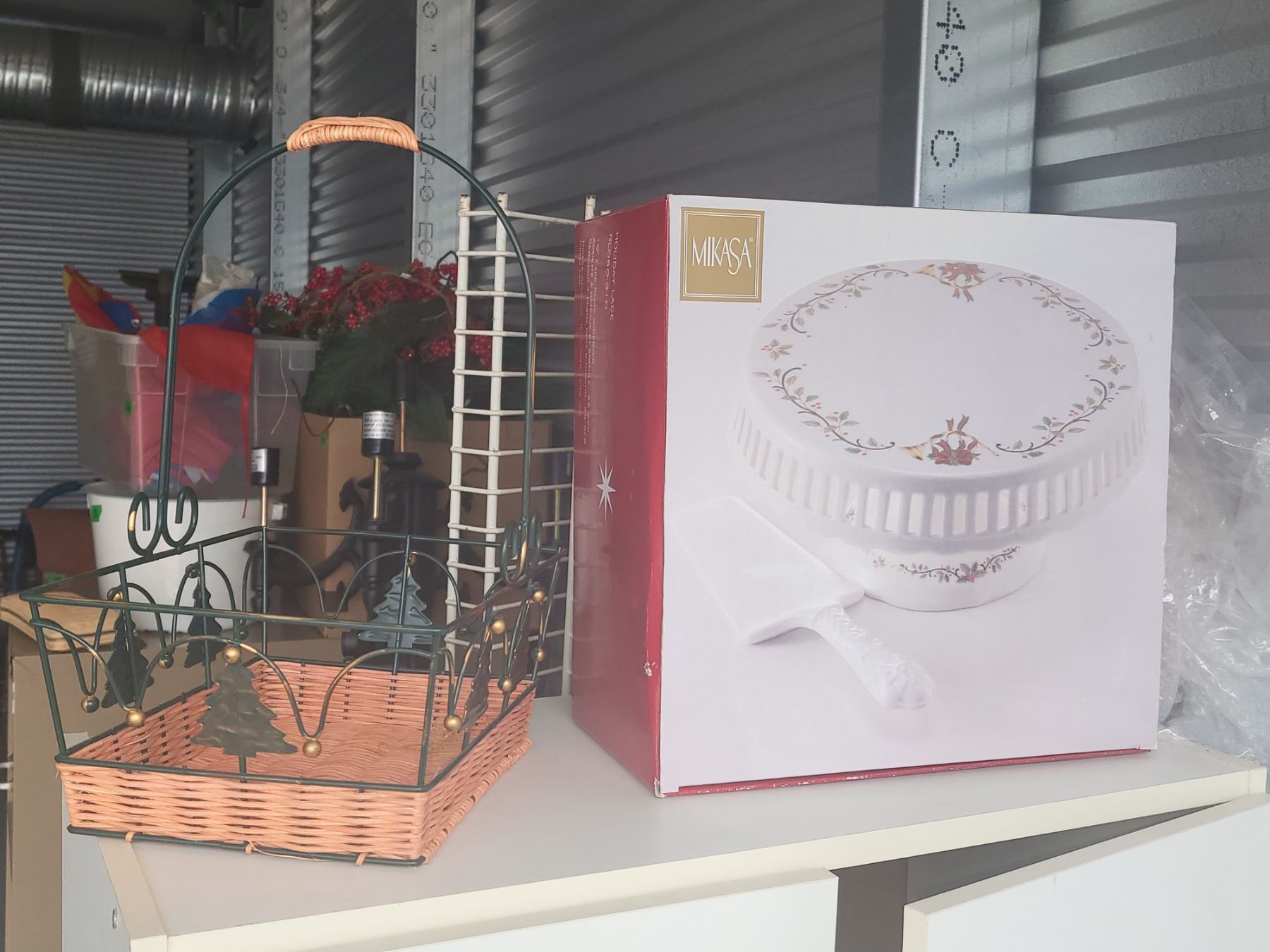 IN BOX MIKASA CHRISTMAS CAKE STAND AND BASKET