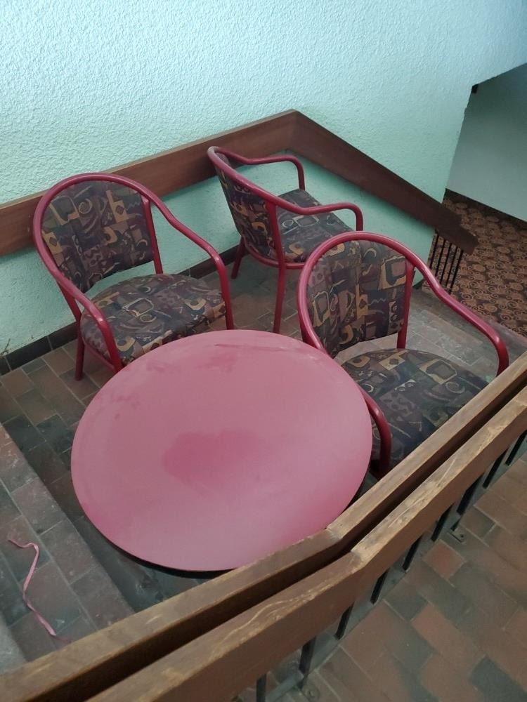 IN STAIRWAY THREE TABLES 2 STOOLS 3 CHAIRS