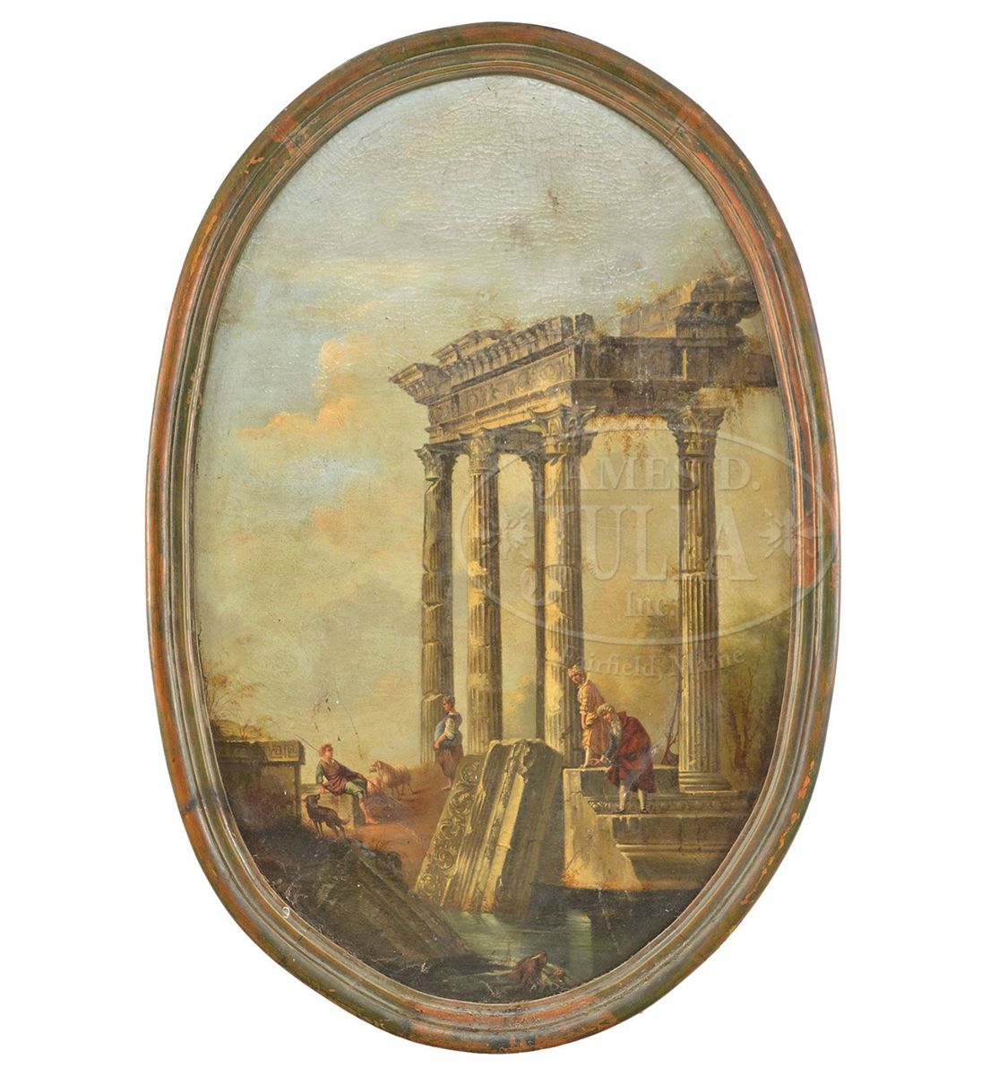 19th century or earlier Oil on canvas Housed in a molded wood frame with finish losses Unsigned SIZE: 59" x 39" oval. Overall: 64" x 44" oval. CONDITION: Raised craquelure with chipping, surface dirt. 9-90430