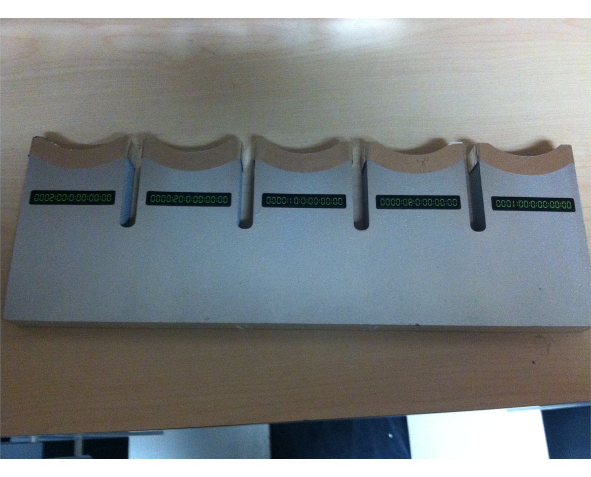 Offered here is the block of time as seen in the thriller starring Justin Timberlake in the future you must buy time to live when they break into the vault, and steel time stampers made of wood with a green sticker on each displaying a count down timer.