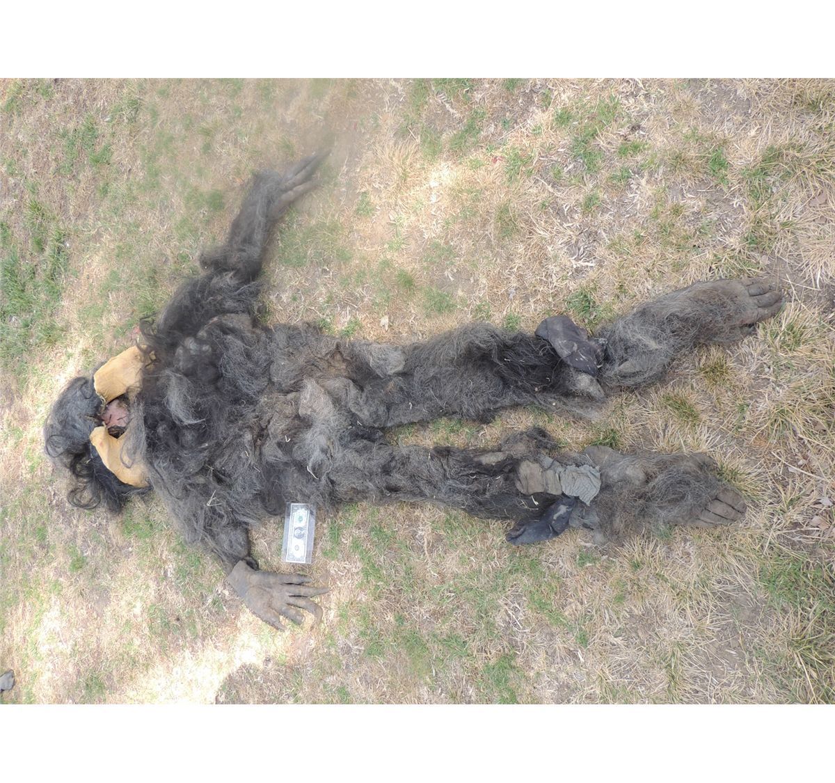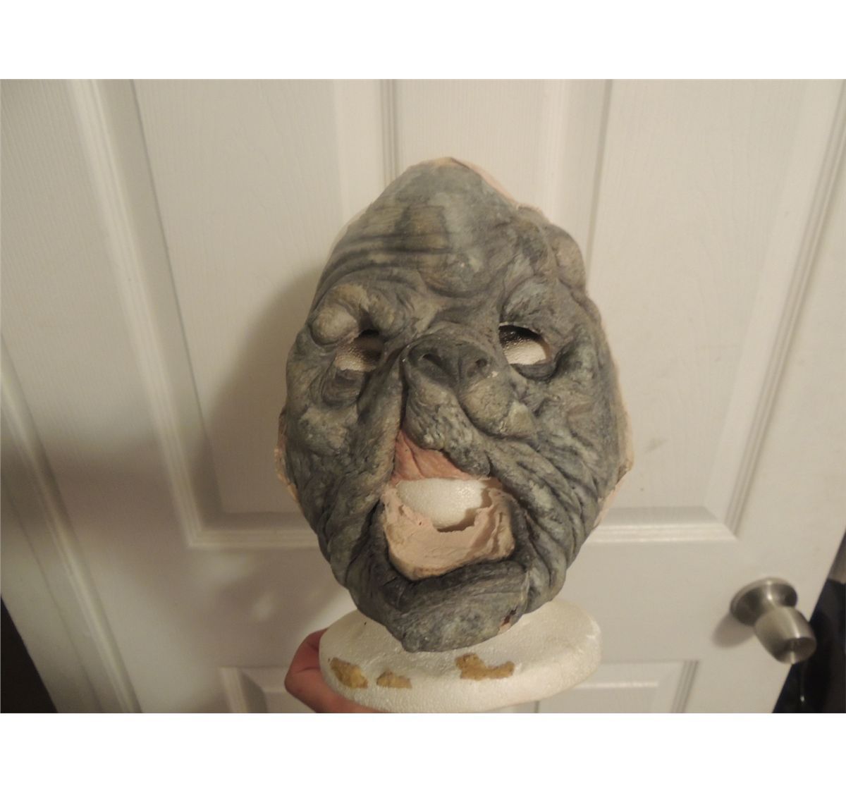 This is a wearable complete Werewolf costume. It includes a full body suit, an over head cowl, the matched pair of hands, and the matched pair of feet. Also included is the ready to go full face appliance seen in last image to complete the costume or display. It seems to have a clept lip. Inbred Werewolf?