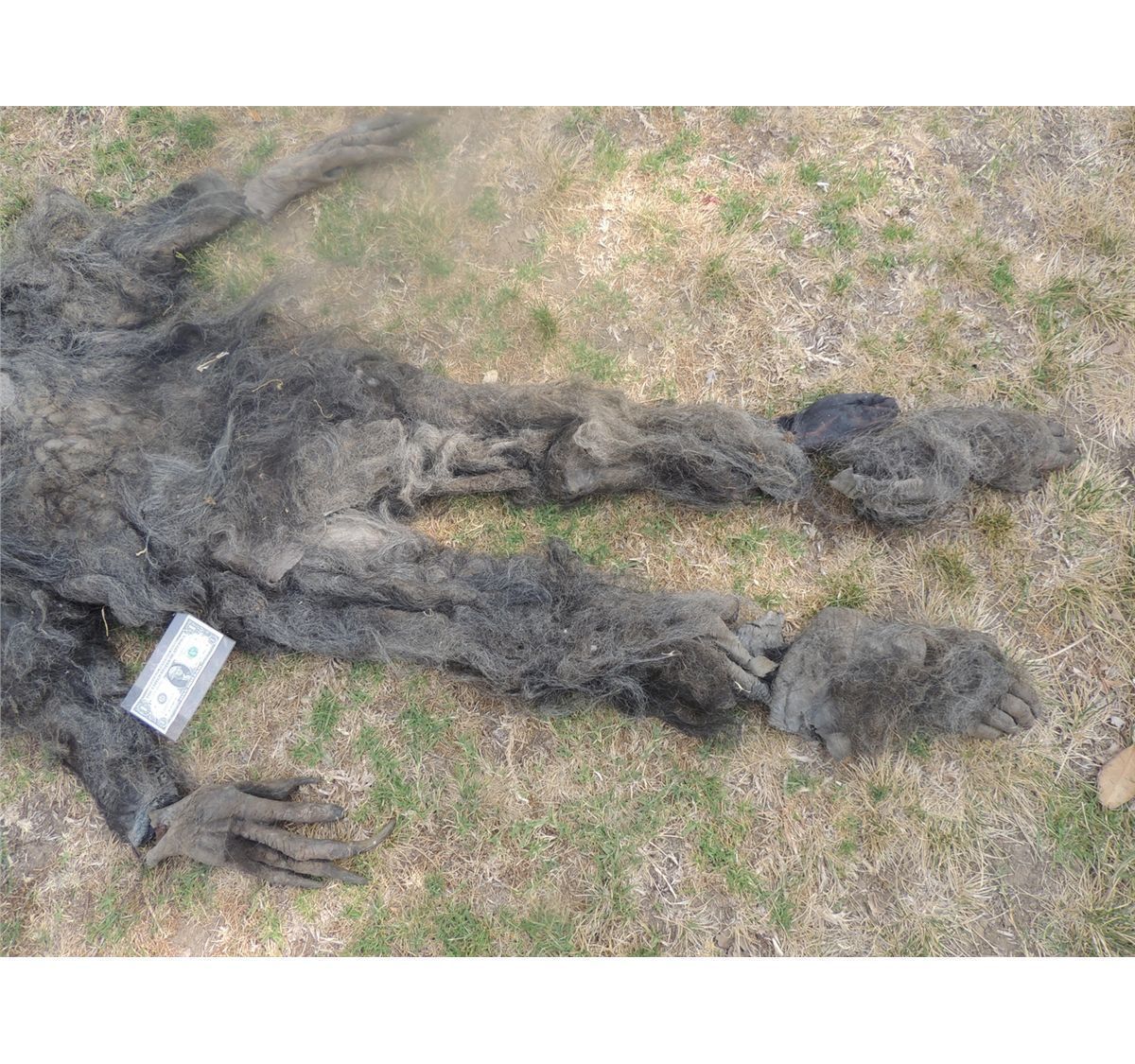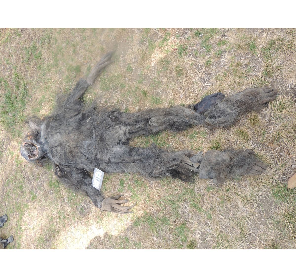 This is a wearable complete Werewolf costume. It includes a full body suit, an over head cowl, the matched pair of hands, and the matched pair of feet. Also included is the ready to go full face appliance seen in last image to complete the costume or display. It seems to have a clept lip. Inbred Werewolf?
