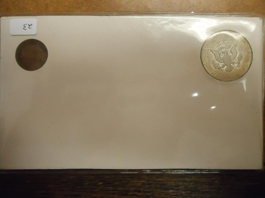 CONTAINS: LINCOLN CENT AND 90% SILVER KENNEDY HALF DOLLAR