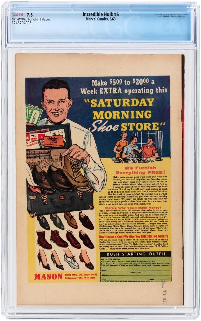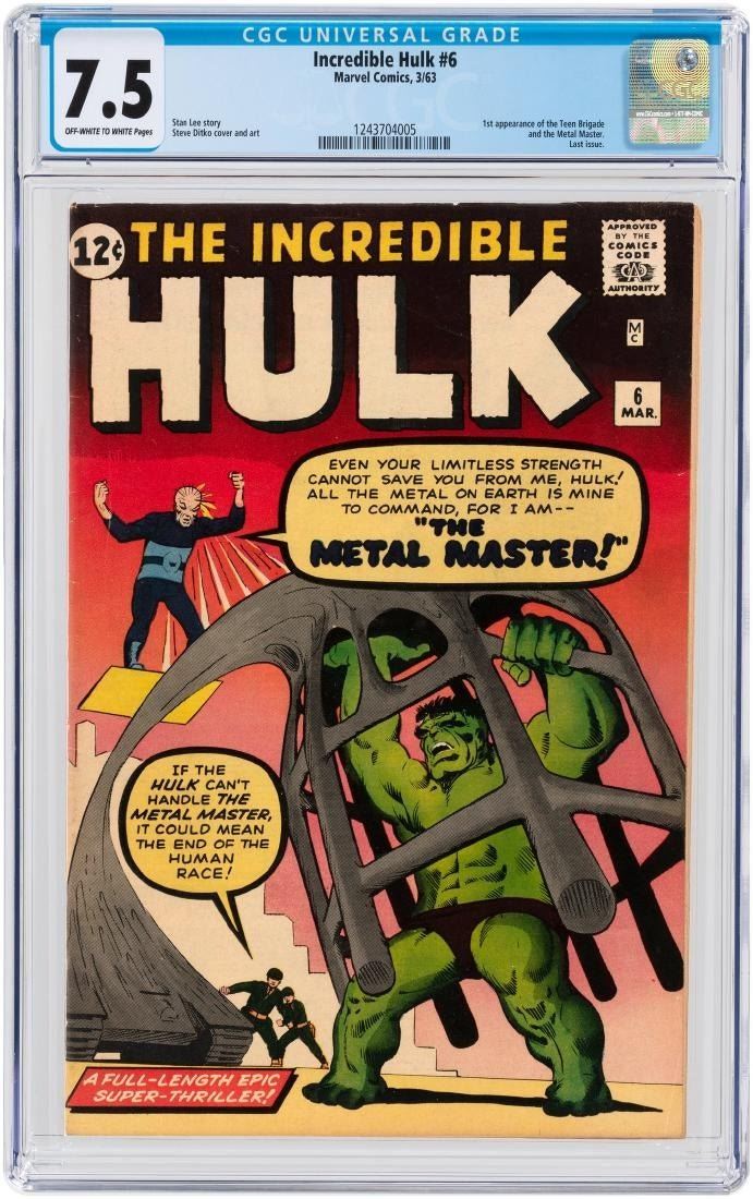 "INCREDIBLE HULK" #6 MARCH 1963 CGC 7.5 FINE-