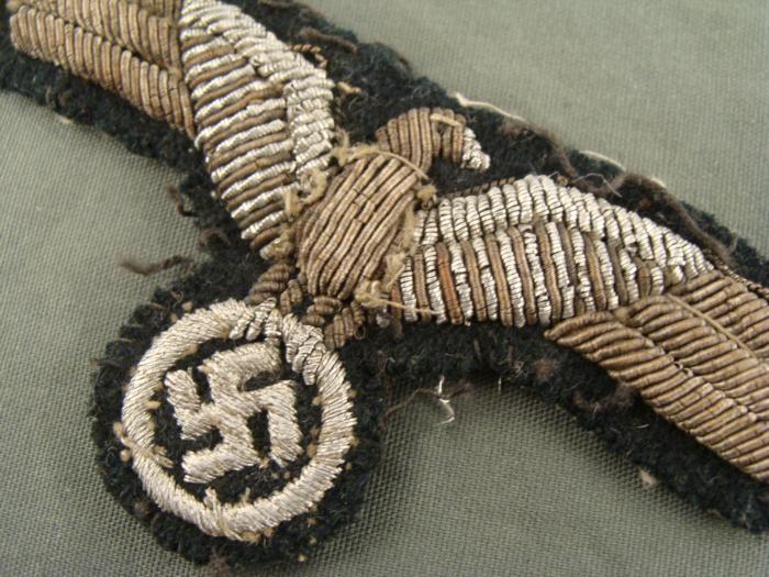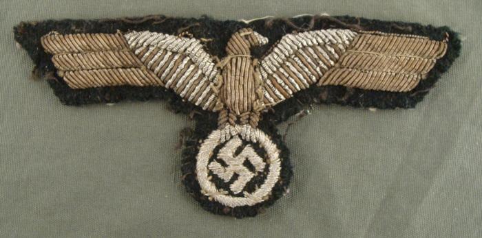 ORIGINAL OFFICER'S SILVER BULLION METAL THREAD UNIFORM BREAST EAGLE. PRIVATE PURCHASE-TAILOR MADE-TAKEN OFF NAZI OFFICERS UNIFORM BY AMERICAN GI