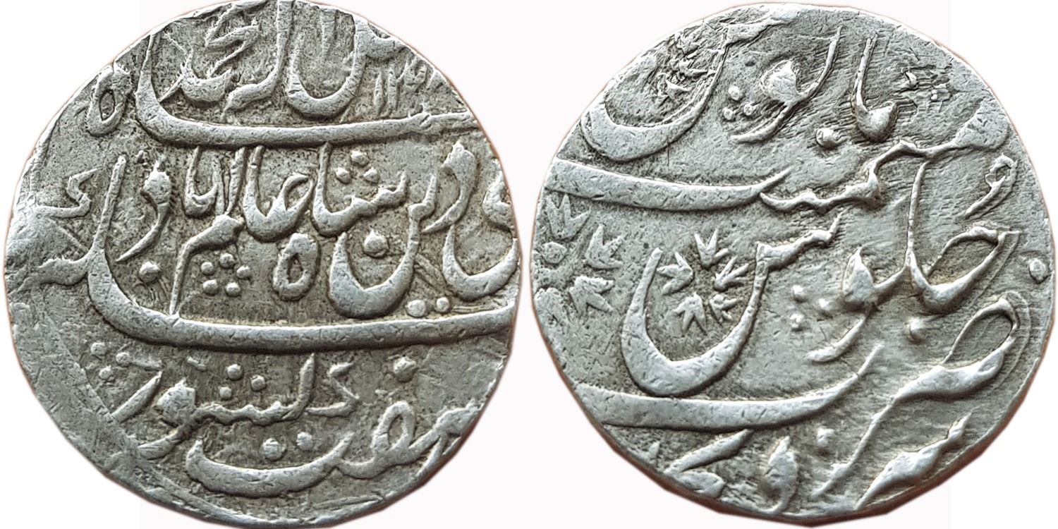 INDEPENDENT KINGDOMS, MARATHA CONFEDERACY: AR RUPEE, (11.4g, 21mm), IN THE NAME OF SHAH ALAM II, SIRONJ MINT, AH 1178/RY-[4], NOT IN KM. ABOUT VERY FINE, SCARCE DATE.