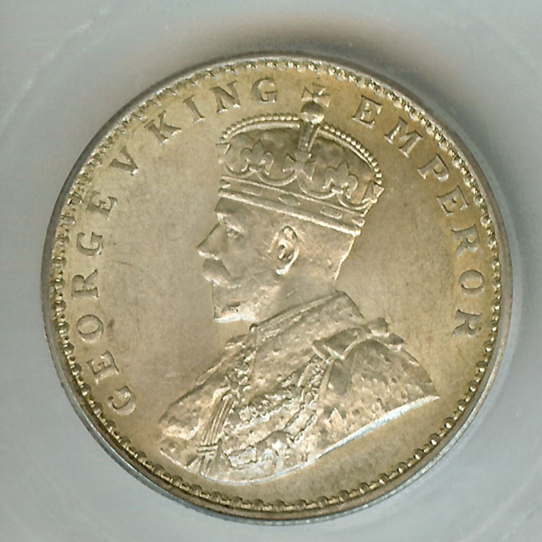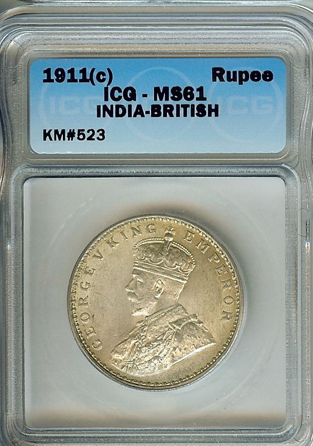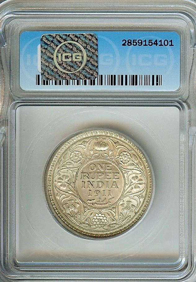 INDIA 1911(C) SILVER RUPEE ICG MS61 KM#523