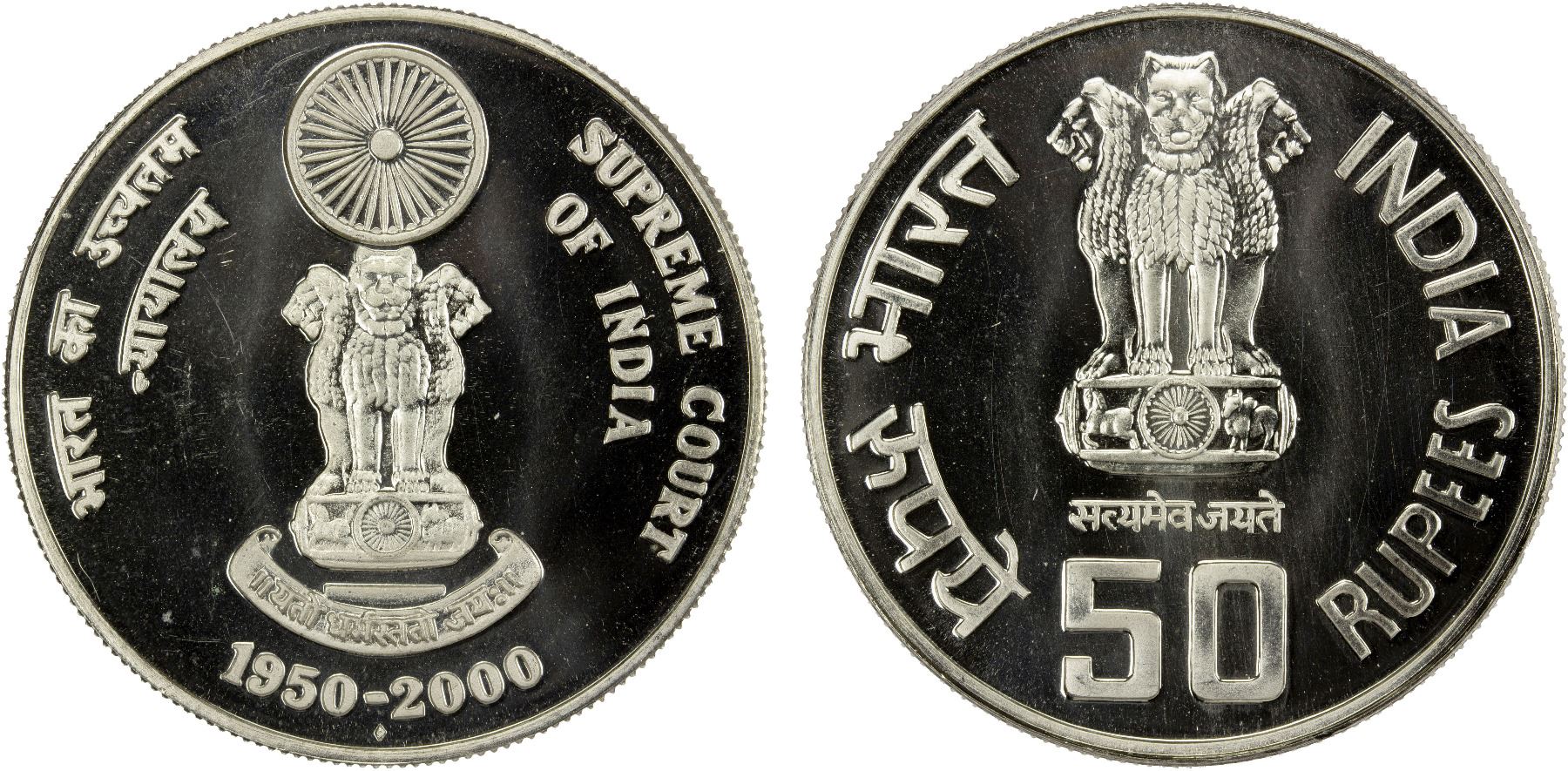 INDIA: Republic, AR 50 rupees, 2000, KM-293, Supreme Court, a few hairlines, rare type, Unc, R.