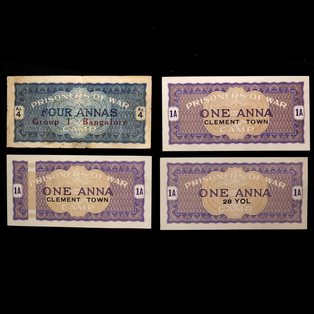 Includes a Group I Bangalore 4a in Fine condition, a Clement Town 1a Type I in Uncirculated condition, a Clement Town 1a Type II with backstamps in About Uncirculated condition, and a 28 Yol 1a in Extremely Fine condition, each measure approx 114 by 57mm. (Lyn Knight St. Louis auction of 20-23 November 2003 lots #824, 830-832)