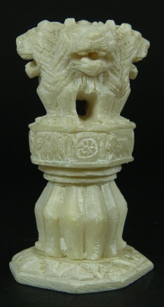 Indian white alabaster stone seal depicting four lions, the national symbol. 19th/20th century. Measures 3 1/8" height x 1 3/4" length x 1 3/4" depth (7.9cm x 4.4cm x 4.4cm). Total weight of 156 grams.