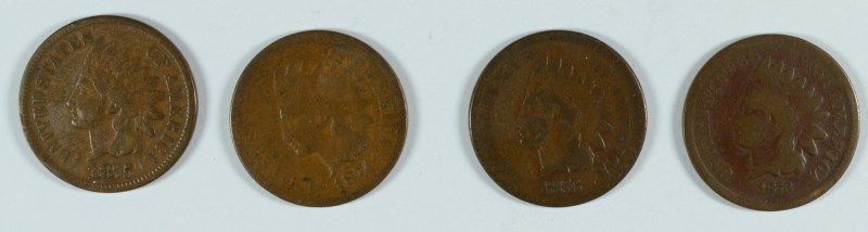 INDIAN CENT LOT: 1873-GOOD, 1874-GOOD, 1875-VG/FINE AND 1876-VG