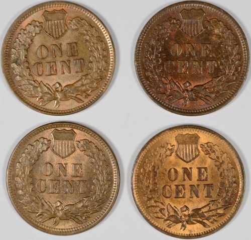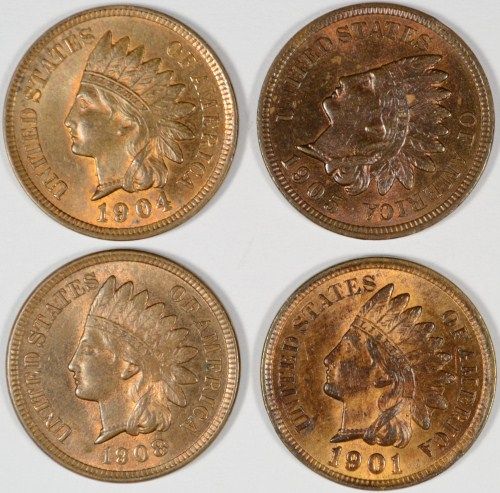 INDIAN CENT LOT, ALL MS-64RB AND NICE: 1901, 1904, 1905, 1908