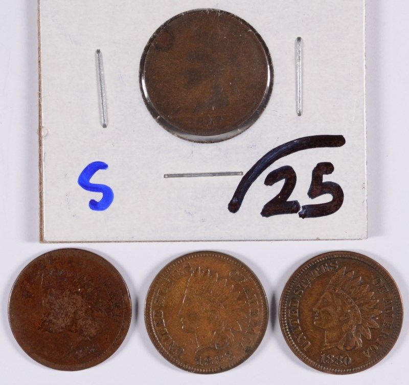 INDIAN CENTS: 1867-GOOD, 1880-XF, 1883-AG, 1873-GOOD