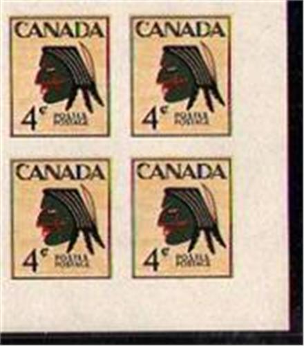 INDIAN ESSAY XF-NH IMPERF LR CORNER OF 4 UNISSUED STAMPS