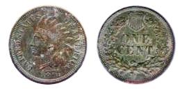 INDIAN HEAD CENT. 1874. ICCS Mint State-60. (;light corrosion).