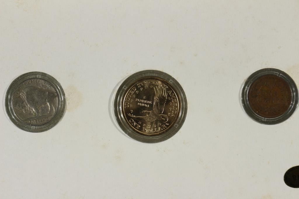CONTAINS: 1907 INDIAN HEAD CENT, 1936 BUFFALO NICKEL AND 2000-P SACAGAWEA DOLLAR