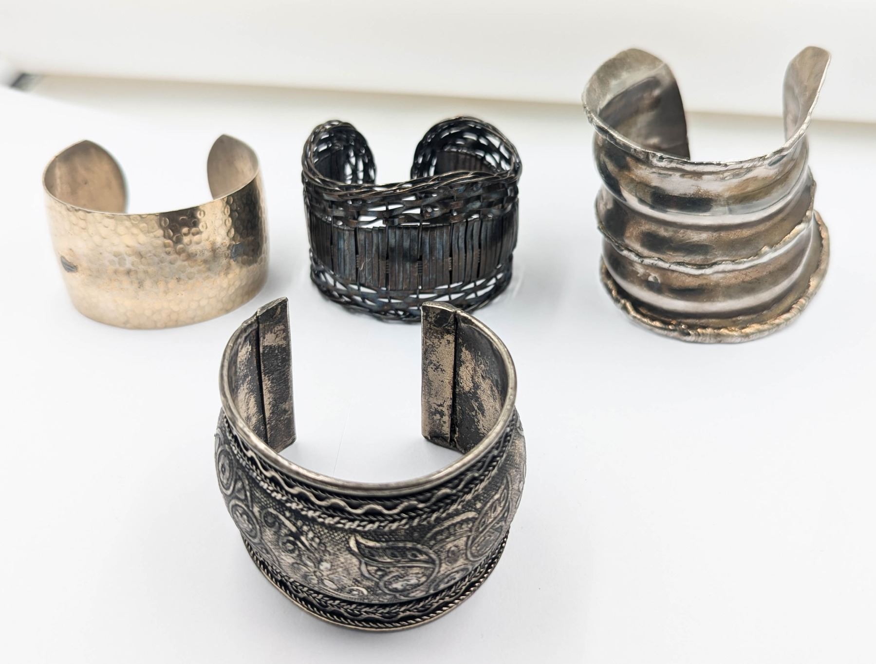 INDIAN LARGE CUFF BRACELETS- LOT OF 4 ASSORTED