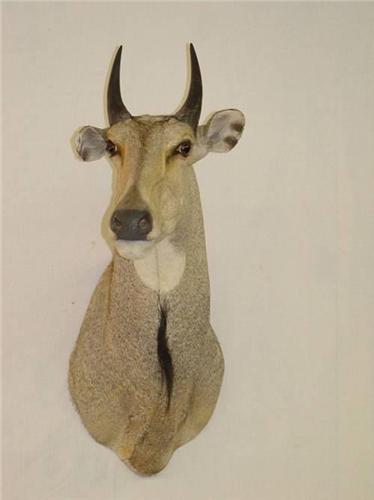 INDIAN NILGAI SHOULDER MOUNT W/ 7" HORNS - WEAR & IMPERFECTIONS;
