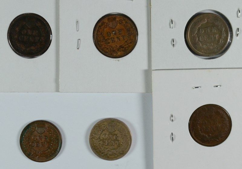 INDIAN ONE CENT GROUP: 1903 XF, 1874 G-VG, 1875 VG+, 1898 AU, 1859 G+, 1862 FINE