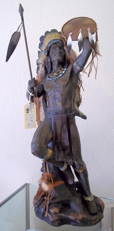 INDIAN STATUE WITH FEATHERS 23 INCHES