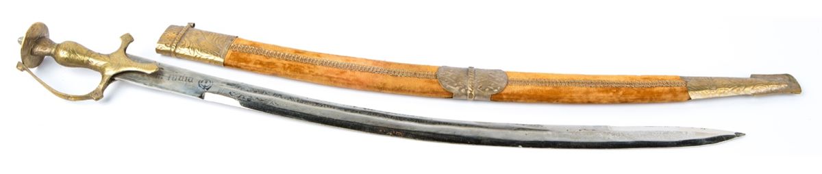 INDIAN TULWAR SWORD Modern display sword. Type: Sword Country: India Blade Length: 25.5" Overall Length: 30"