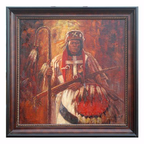 "INDIAN WARRIOR" - ORIGINAL HAND PAINTED OIL ON CANVAS - PROFFESSIONALLY FRAMED - IMAGE 36x 36" - FRAMED 46x 46"