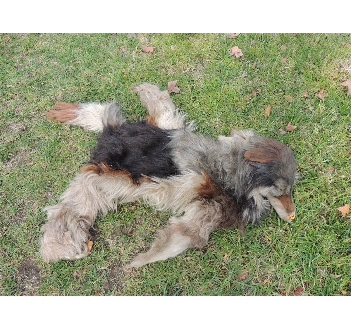 This is a very cool wearable life size faux wolf pelt head dress. You put the head on your head as a hat, and the pelt drapes back like a cape.